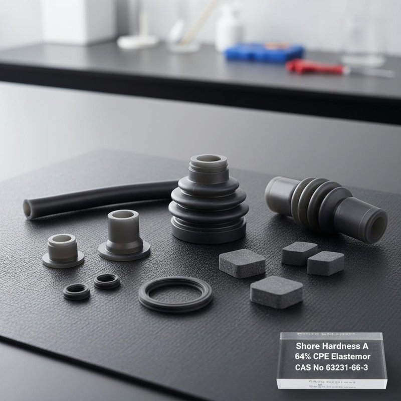 | Highlight: | CPE elastomer automotive components,Shore hardness 64 CPE material,CPE 135A mechanical components material |